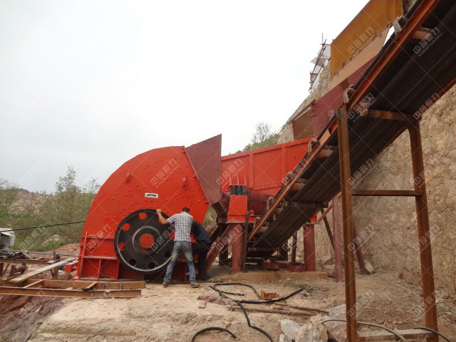 這款大的錘式破碎機從外觀上看來比較龐大,它對進料口尺寸也作了增大,使其可以滿足大塊物料直接進入破碎腔進行破碎,破碎腔也進行了深化,使其可以容納更多的物料進入,大