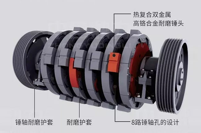 單轉(zhuǎn)子反擊破碎機的所有易損件都有耐磨件護體,降低了磨損率,并且破碎腔里面有厚厚的料層,可以的保養(yǎng)設(shè)備不被磨損。