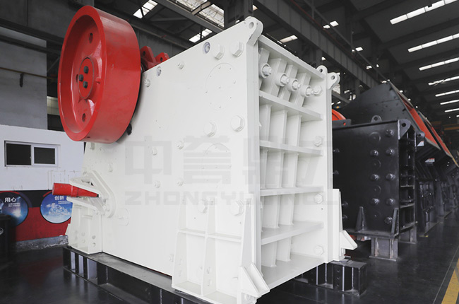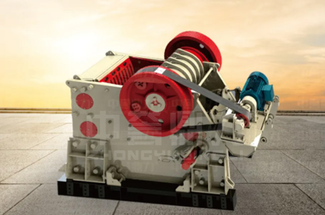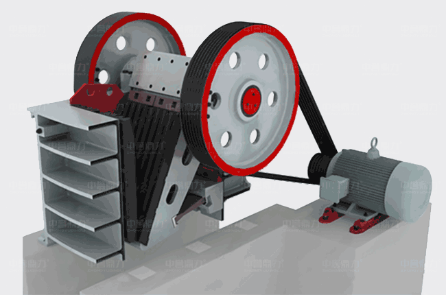 電機(jī)帶動皮帶跟皮帶輪,通過偏心軸讓動顎進(jìn)行上下運(yùn)動,當(dāng)動顎上升的時候,肘板會和動顎之間的夾角變大,從而推動動顎板往固定顎板接近,同時其中的物料會被壓碎或劈碎,達(dá)到破碎的目的,當(dāng)動顎下行時,肘板和動顎之間的夾角會變小,動顎板在拉桿、彈簧的作用下 ,離開固定顎板,同時已經(jīng)破碎的物料從排料口排出。