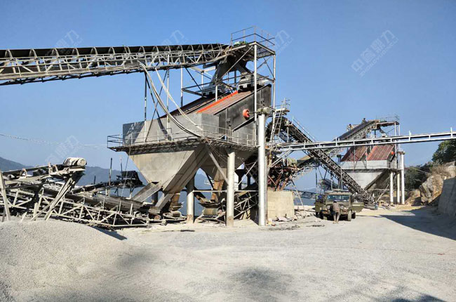 設(shè)備配置:DLZG1550給料機、DLPCZ1615重錘破碎機 、3YK2470振動篩*2臺、2YK2470振動篩*2臺