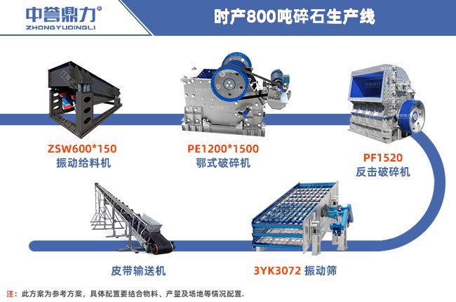 配置時產(chǎn)800到1000噸的生產(chǎn)線要用到破碎設備、給料設備、篩分設備、輸送設備等,如果制砂的話還要配上制砂設備、洗沙設備以及除塵設備等,根據(jù)用戶需求的不同,生產(chǎn)線搭配也比較靈活,時產(chǎn)800到1000噸碎石生產(chǎn)線常見配置有以下幾種: