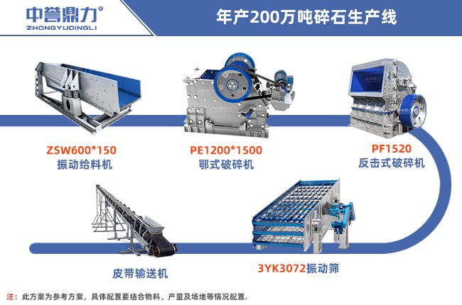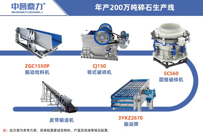 年產(chǎn)200萬噸碎石投資方案可以從物料硬度大小進行配置,比如硬度小的物料我們稱之為軟巖,如石灰石、青石這些都是軟巖,硬度大的物料我們稱之為硬巖,如花崗巖、鵝卵石等物料,在配置方案時要根據(jù)物料硬度進行設(shè)備的選擇,這兩條生產(chǎn)線的投資都在五六百萬左右,實際價格會有差異,下面給大家列舉兩條生產(chǎn)線搭配方案,僅供參考。