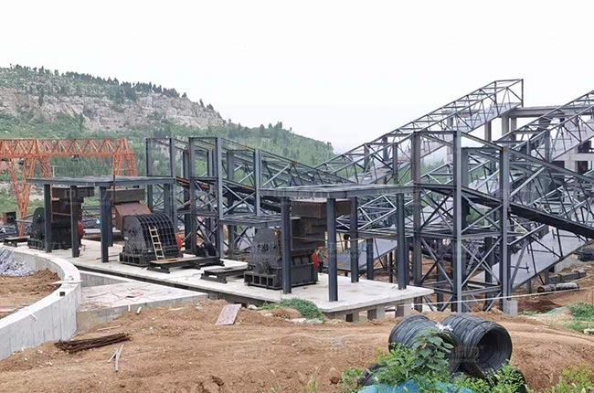 設(shè)備配置:DLZG2560振動(dòng)給料機(jī)、DLPCZ2125重型錘式反擊破碎機(jī)、DLPC1622整形式破碎機(jī)、DL3YKZ3680振動(dòng)篩、皮帶輸送機(jī)等設(shè)備
