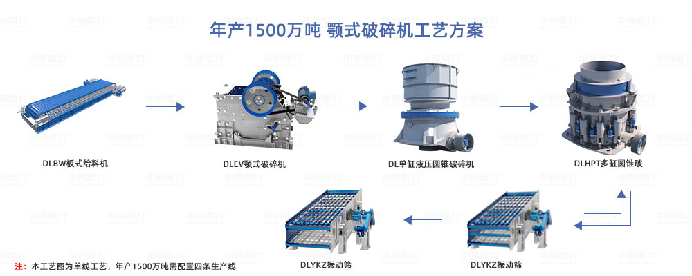 年產(chǎn)1500萬(wàn)噸產(chǎn)能較大,折合成時(shí)產(chǎn)量,大概每小時(shí)要產(chǎn)4000-5000噸,結(jié)合各種碎石設(shè)備的產(chǎn)能,有如下幾種設(shè)備配置方案: