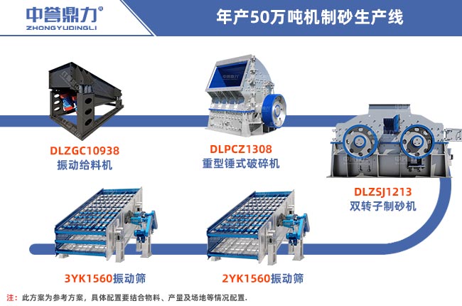 生產(chǎn)工藝:原料倉(cāng)+給料機(jī)+粗碎+中細(xì)碎+篩分+制砂+篩分+除塵+選粉+輸送設(shè)備