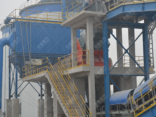 包括粗破喂料倉、中細破及制砂緩沖倉、產(chǎn)品儲存庫、石粉儲存庫。
