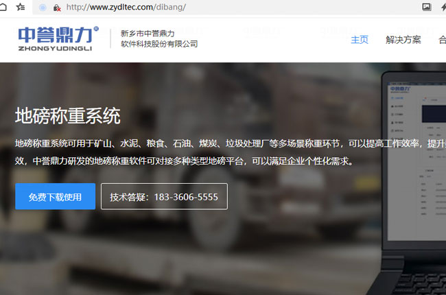 1、地磅稱重軟件下載(下載軟件),或電腦搜索“河南新鄉(xiāng)市中譽(yù)鼎力軟件科技股份有限公司”,進(jìn)入官網(wǎng)(http://www.zydltec.com/dibang/),根據(jù)需求下載需要稱重軟件,有提供不收費(fèi)版本。