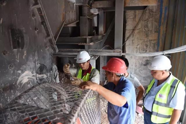 現(xiàn)場,鼎力安裝工程師、銷售經(jīng)理、售后服務經(jīng)理了解到該生產(chǎn)線的產(chǎn)量沒有達到設備時產(chǎn)量時,立即開始檢測設備、查找原因。經(jīng)過查看用戶的破碎原材料,發(fā)現(xiàn)原材料里含有硅巖,加劇了破碎機錘頭磨損程度,進而影響產(chǎn)量。建議在破碎前將硅巖層剝離掉,避免錘頭磨損嚴重的情況再次出現(xiàn)。