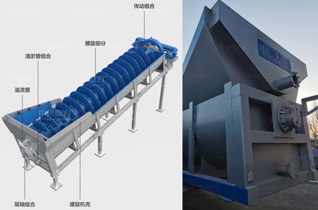 絞龍洗沙機(jī)水里那頭無(wú)傳動(dòng)組,屬于螺旋洗砂機(jī)的尾部,尾部軸承外置于水槽外,避免臟水污染軸承。整機(jī)傳動(dòng)組合在高處,通過(guò)電機(jī)和減速器帶動(dòng)軸承旋轉(zhuǎn),葉輪翻轉(zhuǎn)。