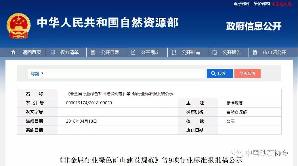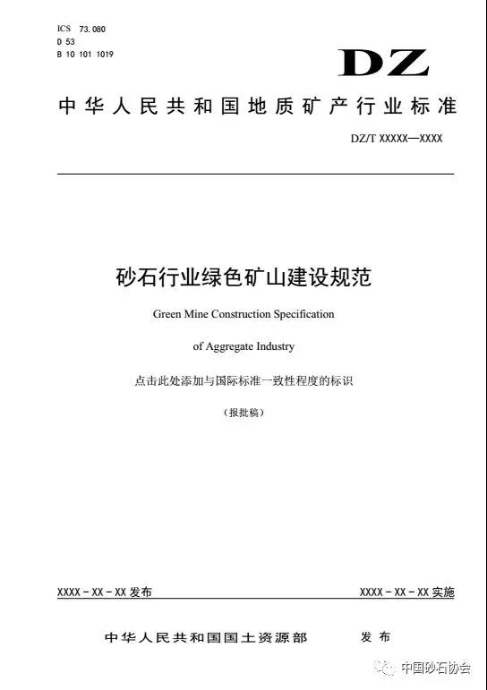 《砂石行業(yè)綠色礦山建設(shè)規(guī)范》等9項(xiàng)行業(yè)報(bào)批稿已正式公示