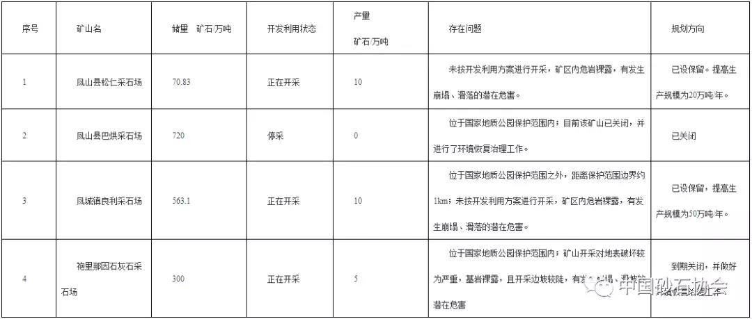 鳳山縣采石場(chǎng)開發(fā)利用情況