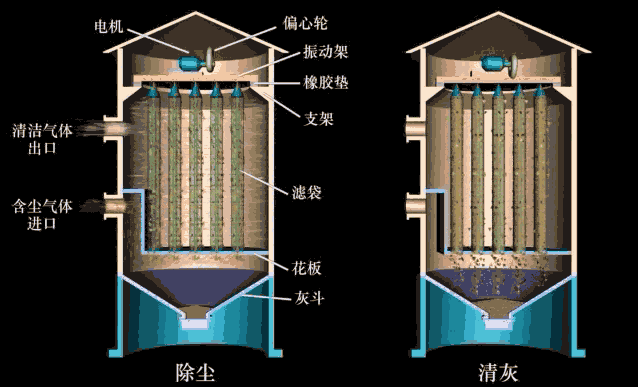 導(dǎo)讀:除塵器是通風(fēng)除塵系統(tǒng)重要的設(shè)備之一,它的好壞直接影響車間、廠區(qū),甚至居民區(qū)的環(huán)境。本文通過23張動態(tài)圖為大家介紹4大類除塵器的工作原理,讓你一秒讀懂它們! 一、過濾式除塵器 1、 袋式除塵器 2、脈沖噴吹清灰方式 3、機械清灰式 根據(jù)振動方式不同,可