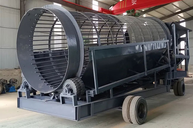 移動滾筒篩石機是將傳統(tǒng)滾筒篩石機安置再有輪子的機架上,可以自由移動、轉(zhuǎn)場,在市面上又叫移動滾筒篩分機、移動式滾筒篩、籠式滾筒篩等。