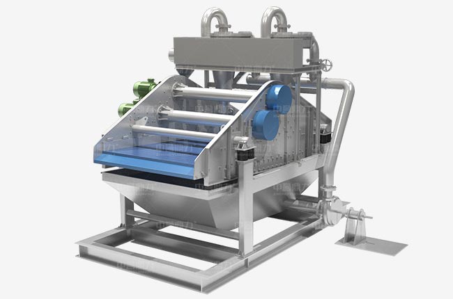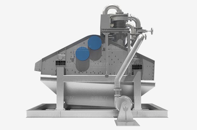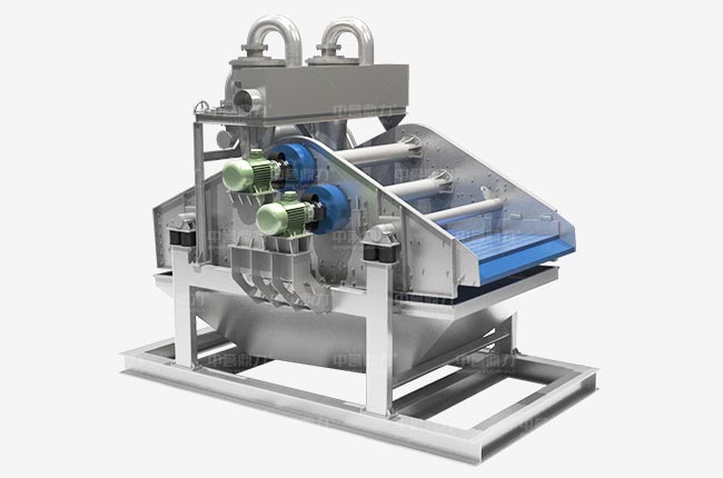 細沙回收脫水一體機工作時渣漿泵將篩水混合物輸送至旋流器,離心分級濃縮的細沙經(jīng)沉沙嘴提供給脫水篩,脫水篩負責清洗、分級、脫水后,細沙、泥等經(jīng)溢流水箱流入污水處理系統(tǒng)。