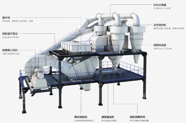 中譽(yù)鼎力DLFX選粉樓模塊化塔樓設(shè)計,采用干法選粉技術(shù),具有石粉干燥、潔凈、粒徑準(zhǔn)確等優(yōu)勢,可在3%-15%間調(diào)整成品砂石含分量。