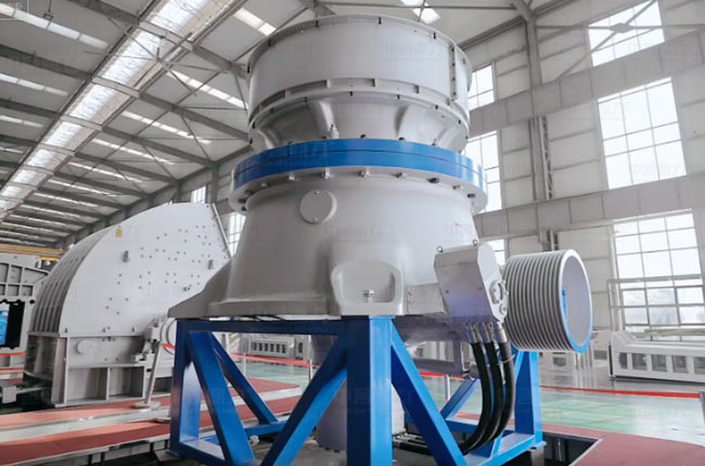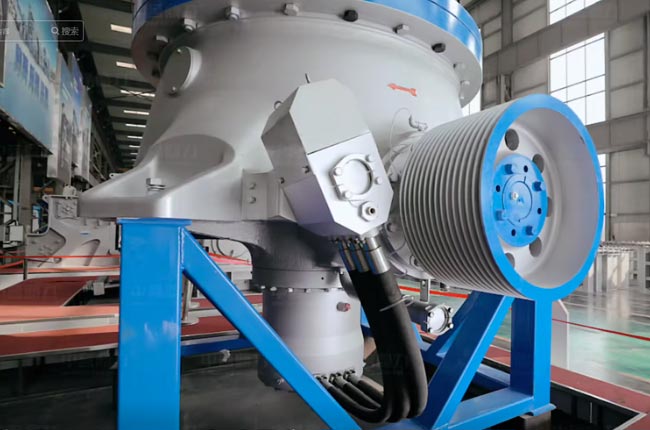 出料大小是由動錐上下運動控制,由動錐底部的液壓缸控制調節(jié),方便快捷,還具備過鐵保護,自動恢復功能,延長設備使用壽命,較大程度停機次數。