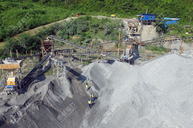 該生產(chǎn)線投產(chǎn)時間是2013年6月,主要生產(chǎn)0—30mm混合料、10—20、10—30mm的石子、瓜米石、石粉等石料,日產(chǎn)量可達3000噸,成品石料應用于水泥廠及混凝土攪拌站。