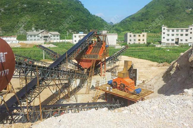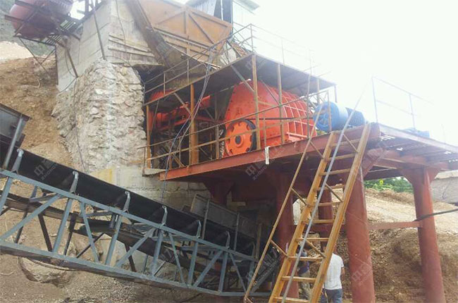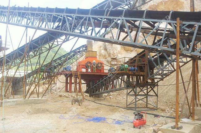 因為原料是硬度不太高的山石,所以選用了重型錘式破碎機當(dāng)主破設(shè)備,可以將大塊的山石原料破碎成小塊石頭,便于進入制砂機內(nèi)進行制砂生產(chǎn),簡化了生產(chǎn)工藝流程,節(jié)省設(shè)備方面的投入成本。