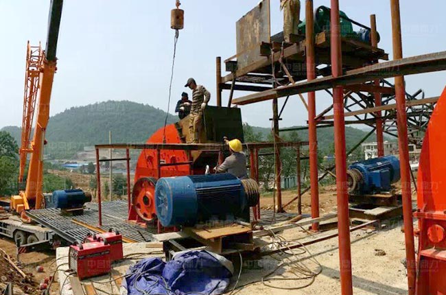 石灰石原料通過給料機均勻?qū)⒃哆MPCZ1615重型錘式破碎機中,破碎后的石料會經(jīng)過振動篩篩選,篩分出成本規(guī)格的石料,會有一部分回料,回料會返回PCX1213整形破中進行再次破碎,然后再次通過振動篩篩選分級。
