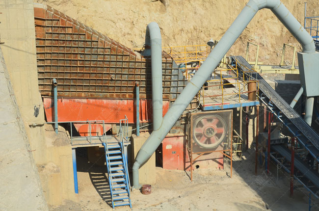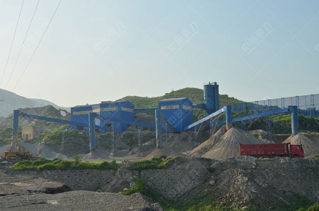 ZG1238振動給料機、PCZ1512重型錘式破碎機、2YK2060振動篩*2、DMCA脈沖除塵器*5臺等。在這條石料生產(chǎn)線中,物料先經(jīng)由重型錘式破碎機進行破碎,被破碎后的物料經(jīng)振動篩篩分分級,符合客戶粒度需求的成品物料被傳送至成品料堆,不符合的物料被重新送至破碎機機腔內(nèi)進行再次破碎。在每一個環(huán)節(jié)都配置有相應(yīng)的除塵設(shè)備。這是一條封閉型的環(huán)保石料生產(chǎn)線。也是我們家砂石生產(chǎn)行業(yè)要發(fā)展的方向。
