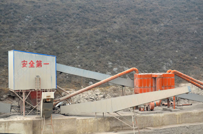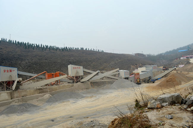 不同規(guī)格的石料經(jīng)輸送機送至成品料堆