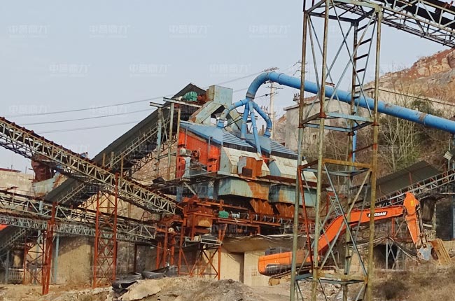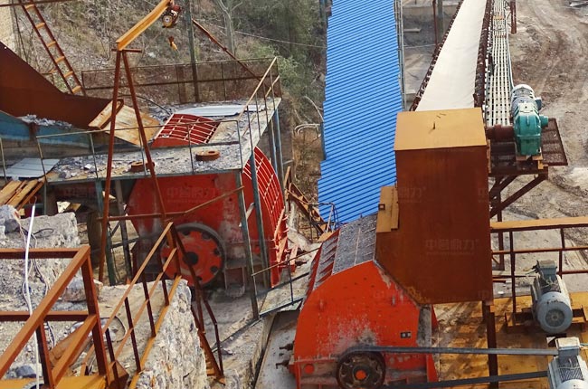該項目位于黃石鐵山區(qū),設計產量在800噸左右,日產量可達萬噸,于2014年10月建成,頭破采用PCZ1615重錘破、二破采用PC1220錘破和6臺YKZ3070振動篩設備。