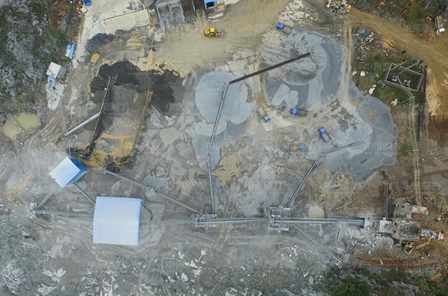 兩道篩分:PCZ重錘反擊式破碎機(jī)破碎后的石料,通過(guò)皮帶機(jī)送進(jìn)頭道曬分機(jī)組進(jìn)行篩分,會(huì)篩分出混合料,成品骨料及需要返回破碎機(jī)的石料;混合石料篩選通過(guò)二道篩機(jī)篩分,符合要求的通過(guò)成品皮帶機(jī)送至成品料堆;