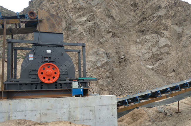 這條時(shí)產(chǎn)500噸的砂巖生產(chǎn)線于2017年6月投產(chǎn),主要加工硬質(zhì)砂巖,采用的是給料機(jī)+硬巖破碎機(jī)+篩分機(jī)。主要處理10-20、10-30、鐵路道砟石料。