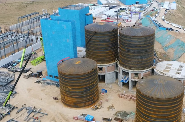 庫容5000噸的四座成品儲(chǔ)料庫