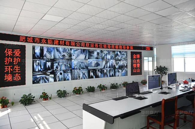 從以上現(xiàn)場(chǎng)實(shí)拍圖可以看出碎石加工生產(chǎn)線都在密閉環(huán)境下,成品料采用倉儲(chǔ)罐儲(chǔ)存,頂部配有收塵器,罐下是裝車區(qū)域,可視廠區(qū)路面硬化及綠化,廠區(qū)整體干凈,無揚(yáng)塵;該項(xiàng)目同時(shí)還采用了中譽(yù)鼎力智能礦山管理系統(tǒng),如上圖中控室圖,可監(jiān)控廠區(qū)及各主要環(huán)節(jié)實(shí)時(shí)畫面。