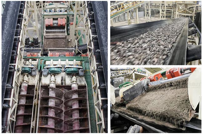 山東源希礦業(yè)成品料用于高速、高鐵等項目,對成品料品質(zhì)及潔凈程度要求較高,采用濕法制砂方式,配有水循環(huán)處理系統(tǒng),除兩臺1622整形錘式破碎機(jī)及3YKZ3070振動篩設(shè)備外,水洗砂環(huán)節(jié)配置的是功率消耗小、洗凈度高的螺旋洗砂機(jī)及配套脫水篩。