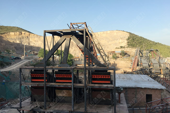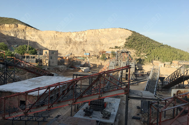 該項(xiàng)目主要加工中等、軟脆性石灰石物料,結(jié)合石灰石軟硬程度,為其配置了1820重錘式破碎機(jī),以及1220整形錘式破碎機(jī)。整個(gè)生產(chǎn)線的設(shè)計(jì)簡(jiǎn)單,所需設(shè)備較少,生產(chǎn)效率高,輕松實(shí)現(xiàn)時(shí)產(chǎn)1200噸的生產(chǎn)需求。