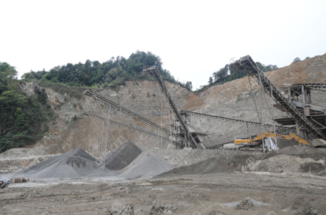 通過上面的案例現(xiàn)場圖可以知道,該項(xiàng)目利用了有力的地勢地形,采用階梯式設(shè)計(jì),給料、破碎、篩分階梯式逐步完成,不僅占地面積小,還的節(jié)省了輸送機(jī)設(shè)備的投資,可謂是工藝簡單,占地少,投資小的石子生產(chǎn)線。