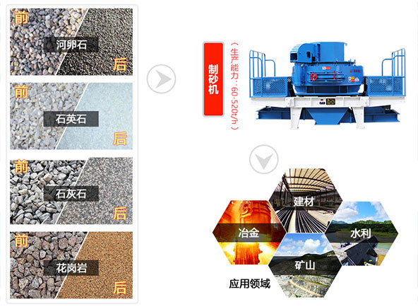 3、VSI立軸細碎機設(shè)備:經(jīng)過處理能力大,價格適中,產(chǎn)能:60-520噸/時。