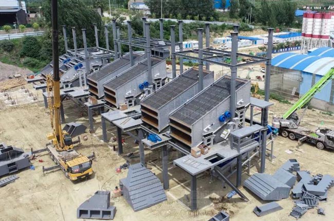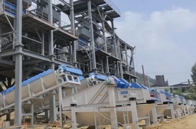 雙線并行方案,可根據(jù)需求單雙線運行,某一工藝環(huán)節(jié)出問題不形象另一生產(chǎn)線正常運行,可避免全線停機,在洗沙工藝中,采用輪式洗砂機+脫水篩組合,優(yōu)勢是比螺旋洗砂機省水且洗砂流失少。