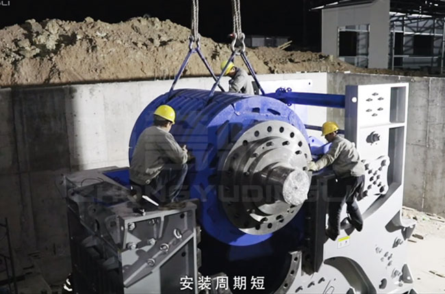 河南衛(wèi)輝遠(yuǎn)大新材臥式旋回破碎機(jī)使用現(xiàn)場(chǎng)