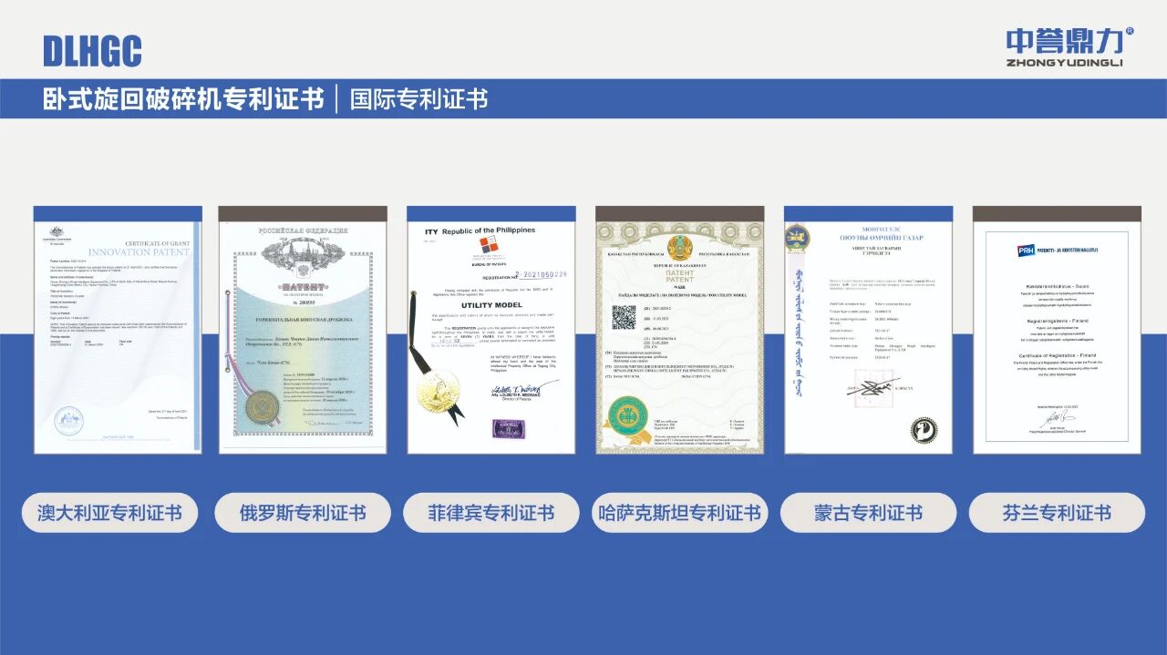 中譽鼎力臥式旋回破碎機不僅先后獲得1項科學技術成果、多項國家專利【[發(fā)明專利(ZL 2022 1 0254447.6)] 一種高效智能臥式旋回破碎機;[外觀專利(ZL 2021 3 0316696.X)] 臥式旋回破碎機;[外觀專利(ZL 2021 3 0316696.X)] 雙腔臥式旋回破碎機;[實用新型(ZL 2021 2 1351908.8)] 一種用于機架側(cè)板的立體加強筋結(jié)構;[實用新型(ZL 2021 2 1187890.3)] 一種破碎機排礦口調(diào)整裝置;[實用專利(ZL 2021 2 1188187.4)]一種破碎機用方形軸承座結(jié)構】和6項國際專利(查看國際專利)。