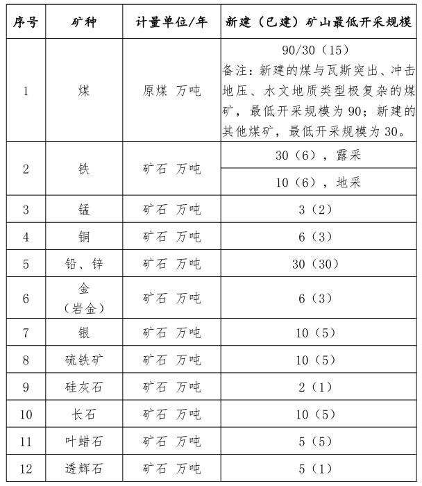 總體思路: | 優(yōu)化礦產(chǎn)資源勘查開發(fā)布局方面: 1、強化規(guī)劃引領(lǐng)支撐,從規(guī)劃源頭加強管控和引導,禁止不符合管控要求的礦產(chǎn)資源勘查開采。 2、深入實施新一輪找礦突破戰(zhàn)略行動,在劃定的基礎(chǔ)調(diào)查區(qū)、重點調(diào)查區(qū)、重點勘查區(qū)和重要礦山深部等重點區(qū)域,以戰(zhàn)略性礦產(chǎn)為主攻礦種,鼓勵和支持加大勘查投入。 加強礦產(chǎn)資源配置規(guī)范管理方面: 1、科學有序投放礦業(yè)權(quán),根據(jù)省經(jīng)濟社會發(fā)展需求推進戰(zhàn)略性礦產(chǎn)和優(yōu)勢礦產(chǎn)探礦權(quán)出讓,提高礦產(chǎn)資源保障水平。嚴格普通建筑用砂露天礦山管理,砂石采礦權(quán)投放要充分考慮砂石市場運行情況和采礦權(quán)總量控制指標約束。 2、嚴格礦產(chǎn)資源開發(fā)準入,明確探礦權(quán)申請轉(zhuǎn)為采礦權(quán)、礦業(yè)權(quán)延續(xù)的具體準入條件,并優(yōu)化調(diào)整重點礦種礦山最低開采規(guī)模。 3、嚴格控制礦業(yè)權(quán)協(xié)議出讓,充分考慮礦山安生產(chǎn)和礦業(yè)權(quán)設(shè)置合理性等因素,明確了具體可按照規(guī)定以協(xié)議方式出讓的4種情形和相關(guān)程序要求。 4、強化采礦用地保障,優(yōu)化采礦用地的供應(yīng)方式,解決礦地矛盾問題。 提升礦業(yè)政務(wù)服務(wù)效率方面: 1、明確礦業(yè)權(quán)出讓登記權(quán)限,對省、設(shè)區(qū)市、縣三級自然資源部門權(quán)限作了調(diào)整完善,并加強審批監(jiān)管。 2、優(yōu)化規(guī)劃審核事項,并明確了無需進行礦產(chǎn)資源規(guī)劃符合性審核的情形。 3、強化采礦權(quán)“三合一”方案評審,細化管理要求。四是精簡礦業(yè)權(quán)申請資料,可通過政府間信息共享途徑查詢或獲取的資料,不再要求申請人提交。 推動礦業(yè)綠色轉(zhuǎn)型升級方面: 1、深入推進綠色勘查開發(fā),建設(shè)一批綠色勘查示范項目,建立健綠色礦山常態(tài)化遴選機制,強化綠色礦山名錄庫及創(chuàng)建庫動態(tài)管理。 2、加強礦山地質(zhì)環(huán)境治理恢復(fù),督促礦業(yè)權(quán)人按照礦山地質(zhì)環(huán)境治理恢復(fù)方案、土地復(fù)墾方案嚴格履行治理恢復(fù)義務(wù)。 3、推進礦產(chǎn)資源節(jié)約與綜合利用,嚴格執(zhí)行礦產(chǎn)資源“三率”標準,逐步淘汰落后產(chǎn)能,并加強尾礦、廢石棄碴利用。 嚴格礦產(chǎn)資源執(zhí)法監(jiān)管方面: 1、壓實各級監(jiān)管責任,強化源頭追溯、信息共享、線索移送、聯(lián)合調(diào)查、聯(lián)合執(zhí)法,形成共管共治格局。 2、強化企業(yè)主體責任,督促礦山企業(yè)嚴格落實礦產(chǎn)資源開發(fā)利用過程中的生態(tài)治理和修復(fù)工作,并加強安生產(chǎn)管理和尾礦庫管理。 3、嚴肅查處違法行為,有效推進行政執(zhí)法與刑事司法的銜接。 | ||||