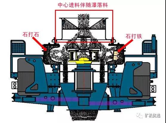 VSI制砂機除了有兩種進料方式:完進料和進料伴隨瀑落進料,還有兩種破碎方式:“石打石”和“石打鐵”。“石打石”適用于整形,“石打鐵”適用于制砂。