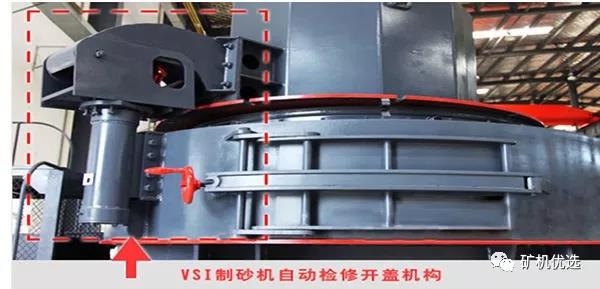 VSI4X和VSI5X制砂機均采用液壓裝置自動啟蓋,方便快捷移開上蓋,人工勞動強度,即使只有一人也可以輕松更換轉(zhuǎn)子及其配件,方便檢修,提高使用效率。