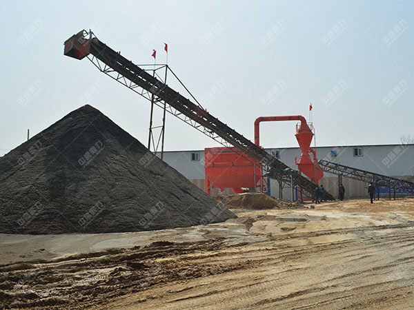 相對干式制砂加工技術(shù),濕式制砂只是多了一步成品砂淘洗篩選的過程,具體該濕式套制砂機主要包含有顎式破碎機、運輸機、圓錐碎石機、碎砂機、洗砂機、圓礦山振動篩 等供電機械,具體制砂技術(shù)過程為:礦物質(zhì)通過由料堆進入振動喂料機,振動喂料機將巖石均勻的送入顎式破碎機進行粗碎,粗碎后的巖石經(jīng)皮帶運輸機進入圓錐碎石機進行細破,細破后巖石由運輸機送至礦山振動篩 進行篩選,不符合碎砂機給料粒度的被返回細顎破繼續(xù)破碎,符合碎砂機給料粒度的巖石被送入碎砂機進行破碎,破碎后的巖石被送至礦山振動篩 進行篩選,粒度大小不符合要求的巖石被返回碎砂機繼續(xù)破碎,符合要求的巖石被送至洗砂機進行清洗,清洗后的巖石由運輸機送至成品堆。