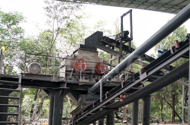 破碎機:PC0706錘破占地面積小,產(chǎn)能在50-70噸/每小時。