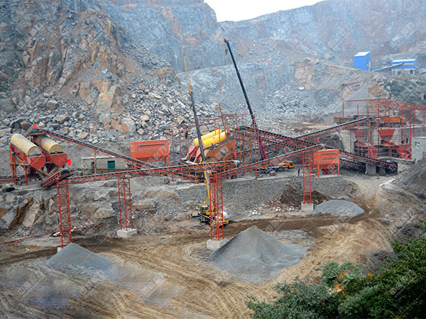 機械配合:2臺HX-07碎砂機、2臺PE1200-1500顎破、2臺HP噸300液壓圓錐破碎機、篩機等