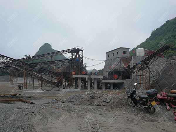 沙石生產(chǎn)線中的石頭由振動(dòng)送料機(jī)均勻地送回重型鵝卵石制沙機(jī)進(jìn)行粗碎,粗碎后的石頭由皮帶運(yùn)輸機(jī)送入到沙石生產(chǎn)線中的制沙機(jī)進(jìn)行深度破碎,整型破碎后的石頭被運(yùn)輸?shù)较瓷硻C(jī)進(jìn)行洗滌,符合成品粒度要求的石頭被送入砂石洗選設(shè)備清洗,清洗后由成品皮帶運(yùn)輸機(jī)輸出即為成品;未符合成品粒度要求的石頭從篩機(jī)返回制沙機(jī)再次破碎,形成閉路多次循環(huán),成品粒度可按客戶的要求進(jìn)行組合和分級(jí),假如選擇干法生產(chǎn)方案,可配置粗細(xì)粉分離機(jī)和除塵設(shè)備。